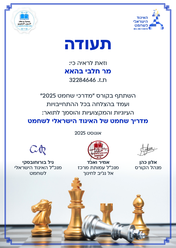 Founded in 2025 by Bahaa Halabi, a Geffen-certified chess professional and certified chess tutor, Intra-Chess is an innovative program that goes beyond traditional teaching.